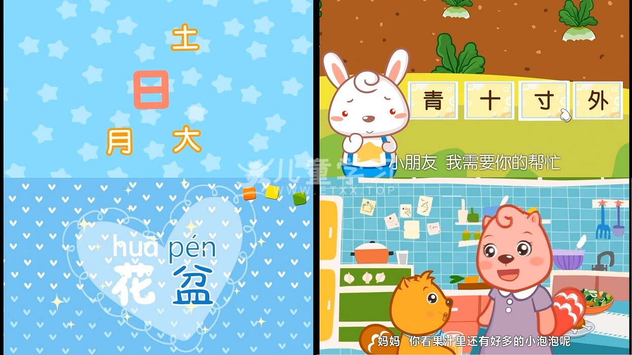简介:通过有趣的动画教宝宝认识常用的偏旁部首,了解汉字的结构,培养宝宝对汉字的学习兴趣。