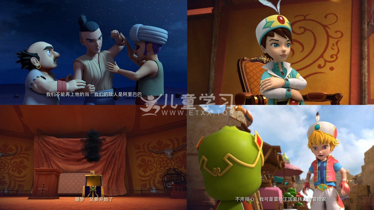 复活后的噩梦君释放黑暗能量,让弯刀变成刀枪不入的怪物。阿里巴巴与阿拉丁联手打败弯刀,最终在神灯精灵和小芝麻的配合下将噩梦君再次封印,世界重归和平。