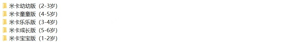 “米卡成长天地”按照孩子的年龄分为0~1岁版、1~2岁版、2~3版、3~4岁版、4~5岁版、5~6岁版。每月一个学习主题,内容涉及宝宝生活习惯的培养、常识认知、自我保护、社会人际交往、逻辑思维能力、语言能力的培养等宝宝成长所需的各个领域,提升综合能力,启蒙情智发育。针对0-6岁不同年龄段宝宝特点精心设计,通过多媒体的方式,全面系统解决父母育儿过程中的各种困惑