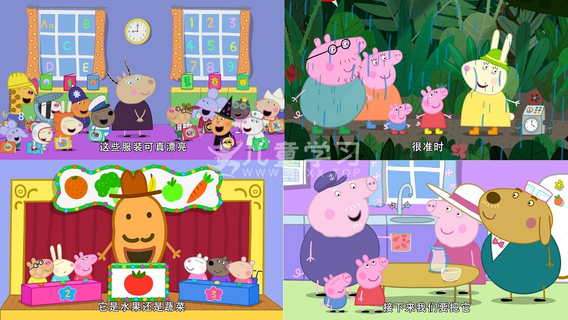 儿童学习网收录的动画片《小猪佩奇 Peppa Pig》第8季 中文版,全部45集,国语发音,内置国语中文字幕。每集大小约28M,总大小1.2G,单集播放时长约5分钟,1080超清MP4格式,可以在电视机或电脑、平板、IPAD、早教机、手机等各种设备播放,提供网盘下载。