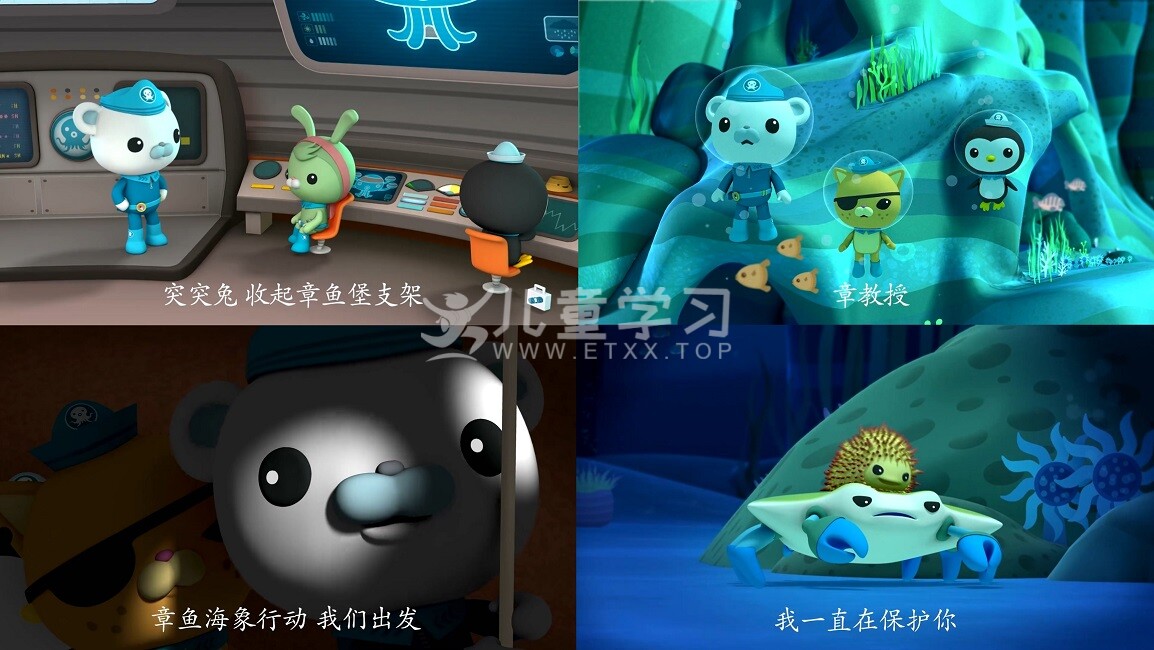 儿童学习网收录的动画片《海底小纵队 第一季 The Octonauts Season 1》第1季 中文版,全部50集,国语发音,内置中文字幕。每集大小约150M,总大小6.89G,单集播放时长约11分钟,1080P超清MP4格式,可以在电视机或电脑、平板、IPAD、早教机、手机等各种设备播放,提供网盘下载。