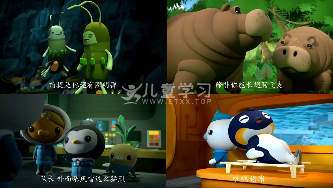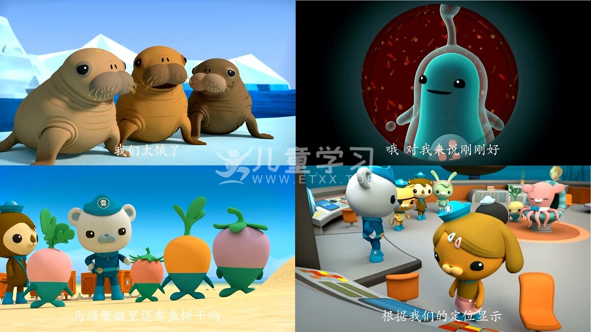 儿童学习网收录的动画片《海底小纵队:The Octonauts》第4季 中文版,全部26集,国语发音,内置中文字幕。每集大小约130M,总大小3.32G,单集播放时长约12分钟,超清MP4格式,可以在电视机或电脑、平板、IPAD、早教机、手机等各种设备播放,提供网盘下载。