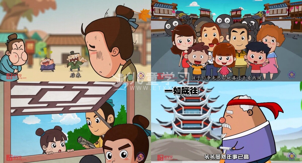 将成语放入简单通俗的句子中,用动漫形象演绎成语故事,引人入胜。片尾辅以小练习,可有效巩固小学生学习效果。