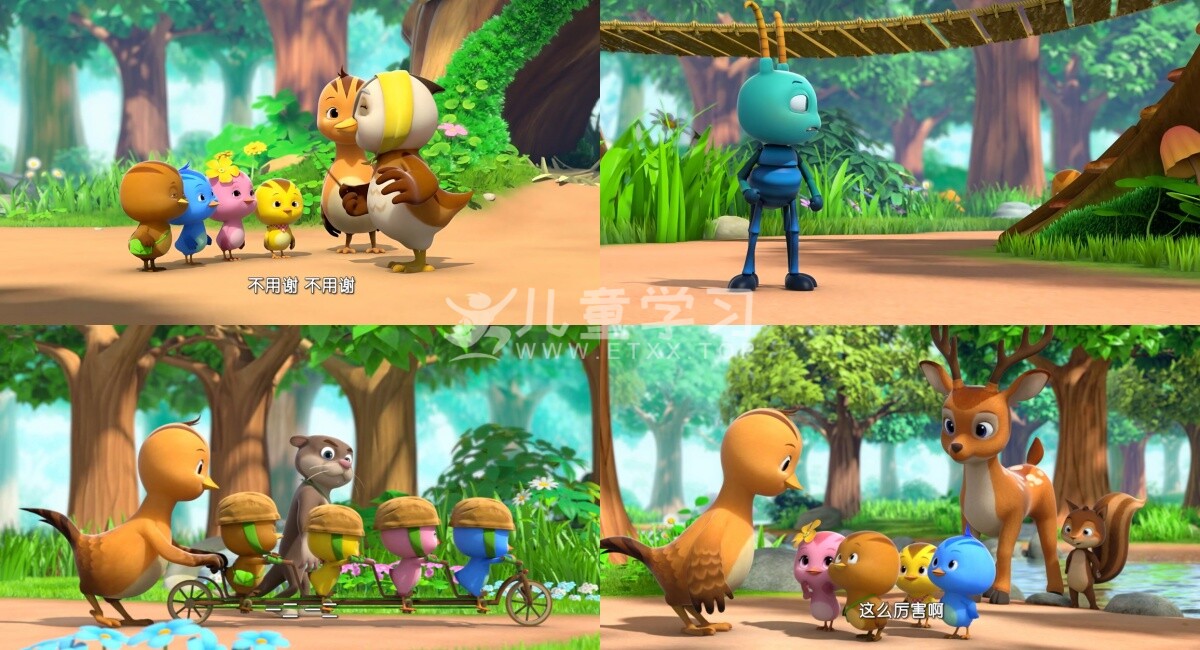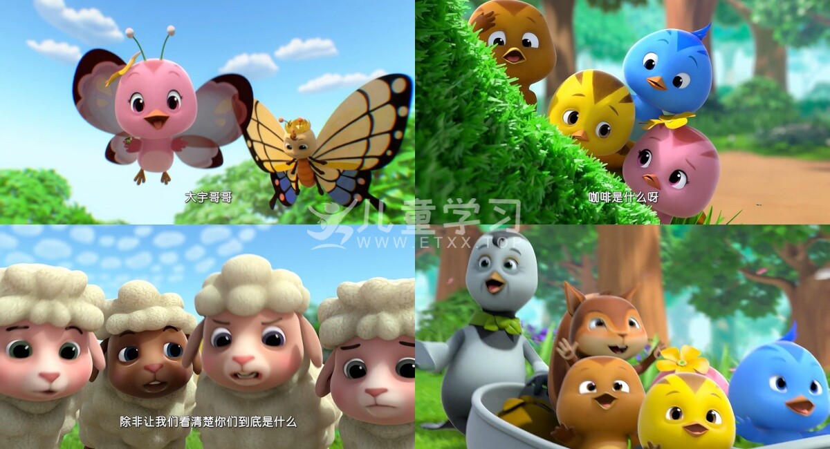 儿童学习网收录的动画片《萌鸡小队》第二季 中文版,全部52集,国语发音,内置中文字幕。每集大小约190M,总大小8.18G,单集播放时长约7分钟,4K超清MP4格式,可以在电视机或电脑、平板、IPAD、早教机、手机等各种设备播放,提供百度网盘下载。